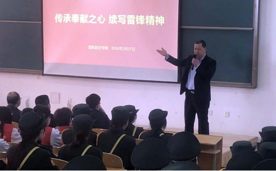 3月27日,国凯航空学院在东校区阶梯八教室隆重召开志愿者动员大会,旨在进一步激发广大学生的志愿服务热情,推动校园志愿服务工作深入发展,传承奉献之心,续写雷锋精神。国凯航空学院志愿者(礼韵服务队队员、国旗护卫队队员、启航志愿服务队队员)200多人参加大会,学院领导及部分教师出席大会。大会由23级空乘专业学生彭清禹主持,国凯航空学院党支部副书记罗勇做动员讲话。