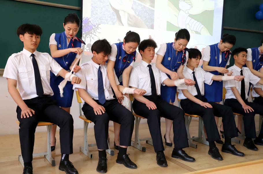 驾轻就熟,展露扎实功底。救生衣演示、氧气面罩演示、绷带、三角巾演示……动作轻巧、手法细腻、选手们都能准确熟练无误地完成每一个步骤。他们出色的表现,给师生们留下深刻印象。