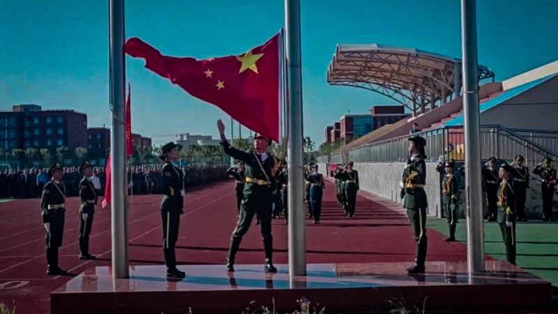 ------国凯航空学院国旗护卫队出色完成学校庆祝建国75周年升旗仪式