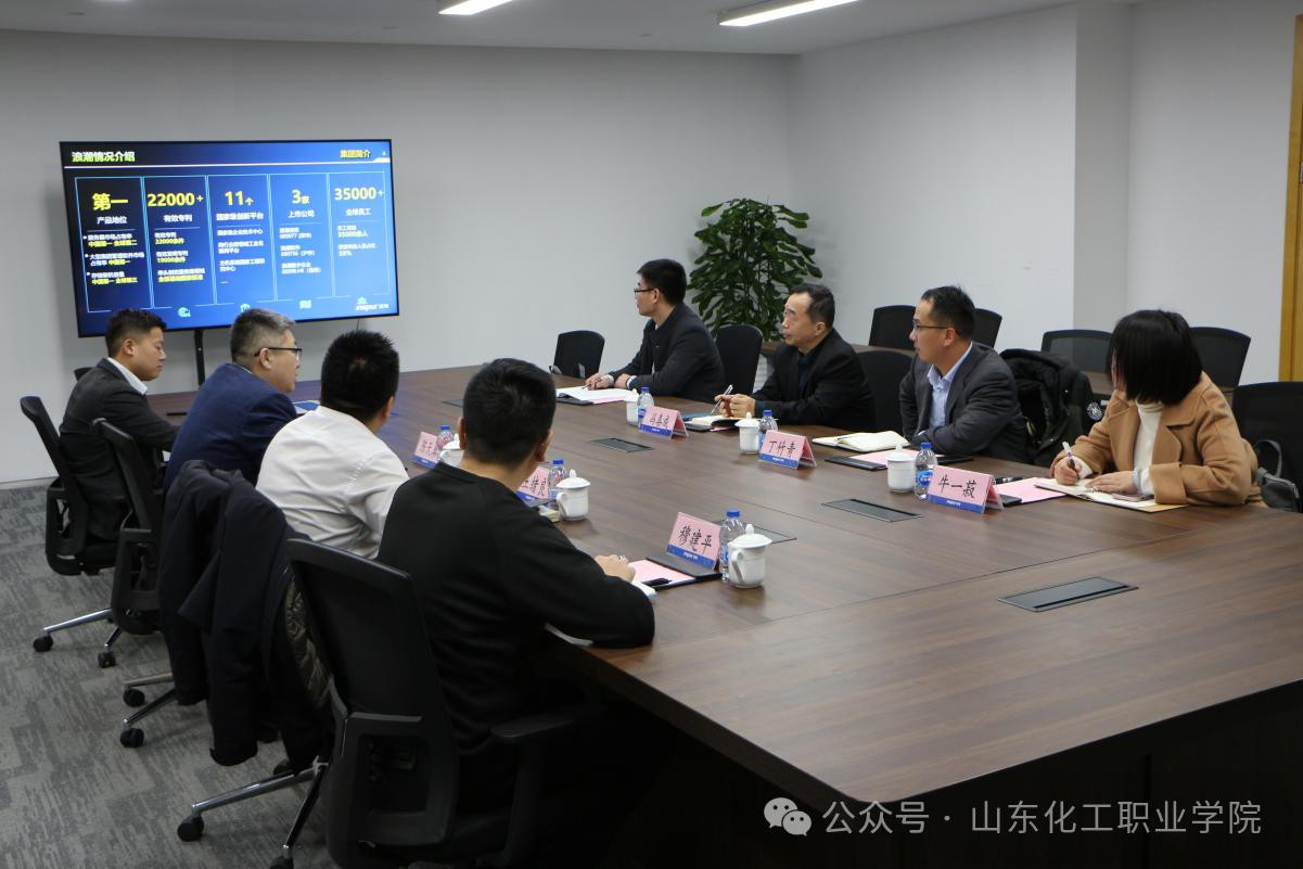 随后,朱彬彬一行到访山东众益合控股集团股份有限公司,就企业发展规划、用人需求以及校企协同育人模式与企业方进行座谈交流。朱彬彬介绍了学校在实践教学体系、人才培养模式等方面的特色优势,提出通过校企双主体、校内外双环境,提升人才培养质量和岗位适应性的合作思路,并围绕校外实践教学基地建设、企业文化进校园、订单化培养等内容进行协商探讨。