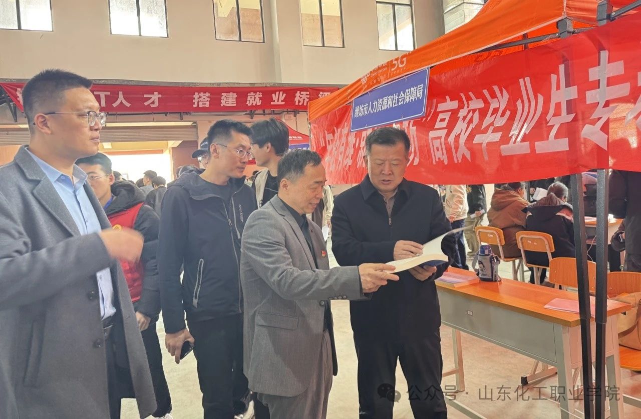 潍坊市人社局、滨海区党群工作部等单位领导来到招聘会现场,关心关切企业招聘情况和学生应聘进展,现场给予就业政策指导,助力校园招聘会成功举办。