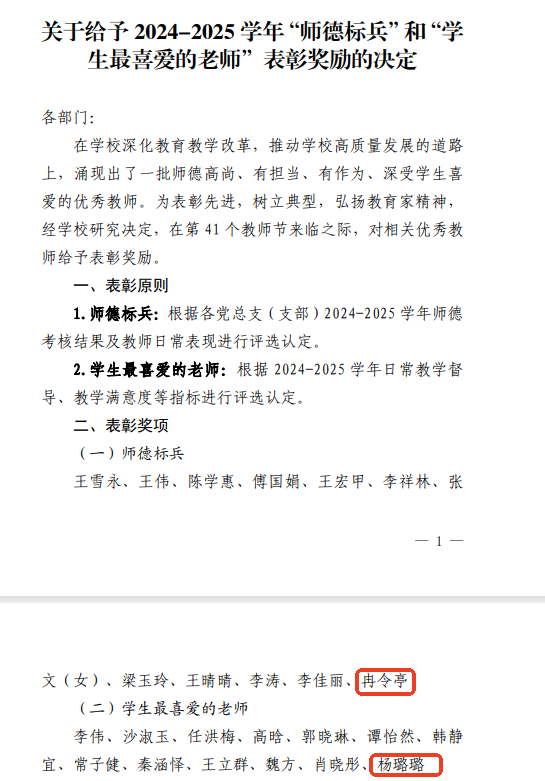 近日,学校对2024-2025学年“师德标兵”与“学生最喜爱的老师”进行了表彰,国凯航空学院冉令亭、杨璐璐两位老师分别获此殊荣,以扎实的育人成效与鲜明的教学特色,展现了学院教师队伍的过硬素养与育人初心。
