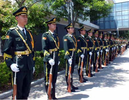 国凯航空学院始终把培养“爱国的情怀”做为核心教育理念之一,落实到教学环节中去,高度重视大学生国防教育工作。国凯集团董事长、国凯航空学院院长郭召德深知国旗护卫队不仅仅是一个普通的学生团队,它更是学院爱国主义教育和精神文明建设的重要载体,因此,一直将国旗护卫队的建设放在重要位置,给予全方位的支持和指导。国旗护卫队目前共有成员40余人,由专门的军事教官作为指导老师进行全方位的规范化训练,在训练中,队员们不仅进行了严格的体能训练,还接受了仪仗队礼仪和仪容仪表的培训。尤其以队列训练为抓手,养成了队员们纪律严明、敢于担当、甘于奉献的优良作风。国旗护卫队以护卫国旗为使命,以弘扬爱国主义精神为己任,以展现当代大学生团结进取、积极的精神风貌为目标,积极探索对外交流合作,打造出具有学院特色的文化品牌,成为校园内一道亮丽的风景线。