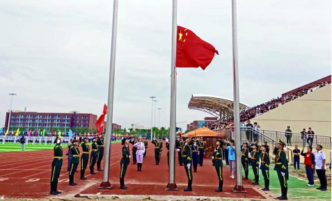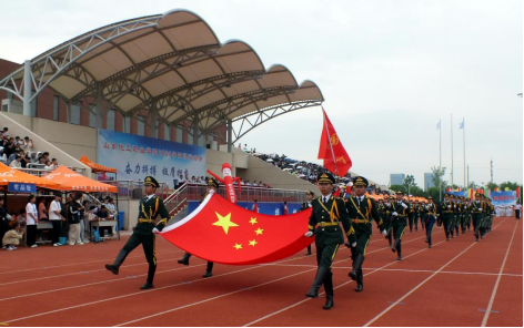 随着开幕式的进行,运动员进行曲响彻全场,国旗护卫队迈着整齐的步伐,昂首挺胸地步入会场,他们身着笔挺的制服,手握鲜艳的五星红旗,庄严而神圣。在庄严的国歌声中,他们准确无误地将国旗升至旗杆顶端,展现了高度的责任感和使命感,赢得了在场师生们的阵阵掌声,也彰显了学院学子的爱国情怀和良好风貌。