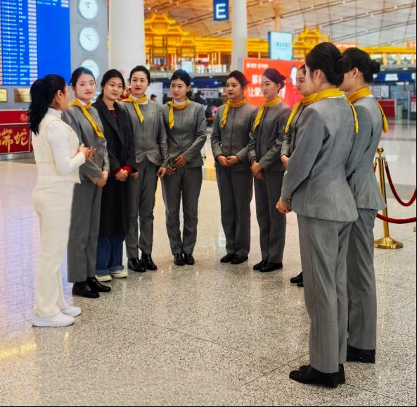 同时,学院领导还看望了在岗就业及实习学生代表,对她们在工作中的表现给予充分肯定,并勉励他们在实践中通过岗位历练持续提升职业竞争力。学生王淑娴说,从学院的礼仪实训室到首都机场要客区,我始终铭记老师教导的“服务即细节”。学院的职业素养课,让我能从容应对国际旅客的需求。感谢母校为我插上翱翔蓝天的翅膀,我会继续用专业服务展现国凯人的风采!